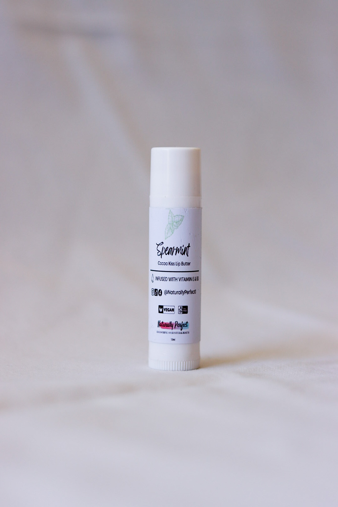 Cocoa Butter, Grape seed Oil, Shea Butter, Natural Vegan Wax, Castor Oil, Vitamin E and Essential Oil.